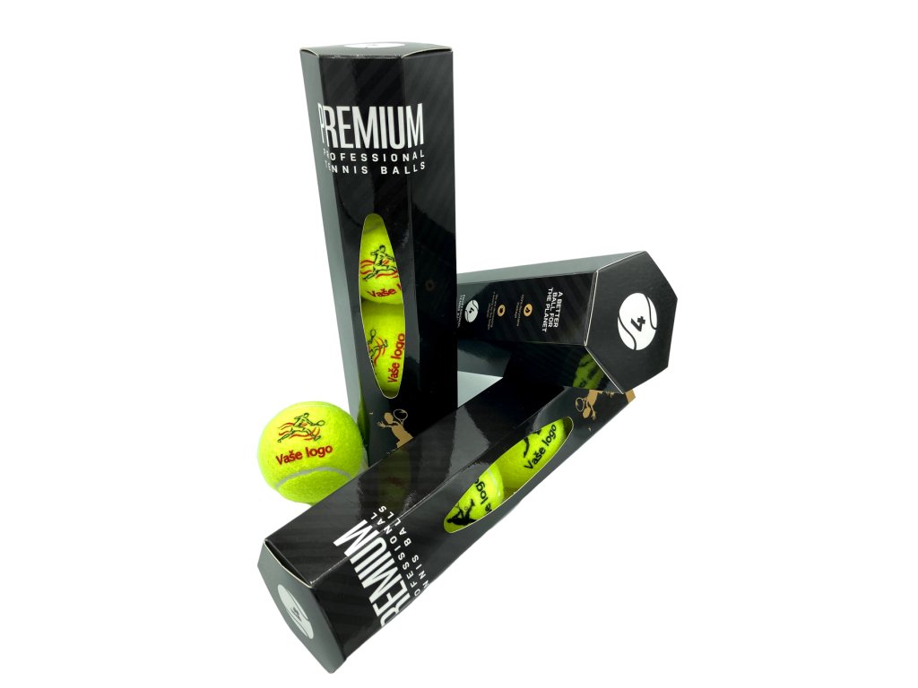 Premium míček s logem klienta je vhodným míčkem pro profesionály, vrcholové turnaje a tenisové kluby. Míček je určen především pro závodní hráče a splňuje požadavky Mezinárodní tenisové federace (ITF). Jedná se o unikátní míč, který má úžasné herní vlastnosti a mimořádně dlouhou životnost. Nemusíte se bát, že míč není vakuovaný v tubě, herní vlastnosti si udržuje dlouhodobě. Míček je určen pro všechny povrchy. Balení si můžete zvolit do speciálně navržené černé ECO-tuby pro 4kusy míčů. Míče premium vydrží v balení bez ztráty vlastností 6 měsíců.